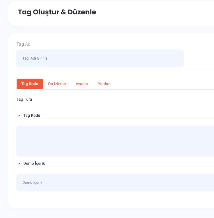 Tag Adı:Kolay anlaşılabilecek Benzersiz bir Tag Adı Belirleyiniz.
