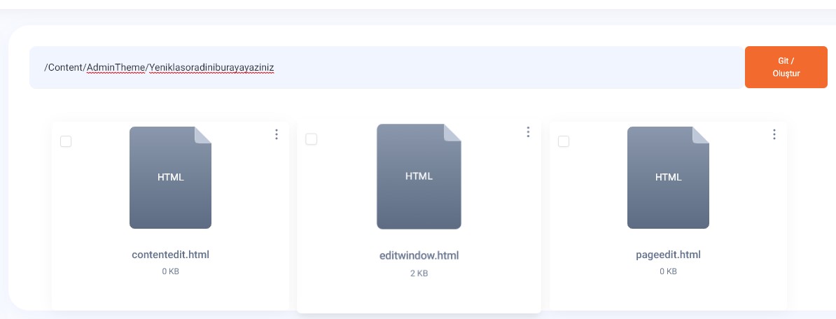Dosya düzenleme işlemlerini ayrıca kullanıcı Login sayfası, Admin içerik sayfası gibi tasarımları barındıran AdminTheme klasöründe yer alan dosyları düzenlemek içinde kullanabilirsiniz.