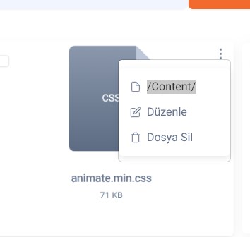 Dosya yönetim panelinde yüklenen dosyların sizin için gereli dosya yollarını 3 nokta menü altında ilk sırada bulunan input nesnesini tıklayarak kopyalabilirsiniz.