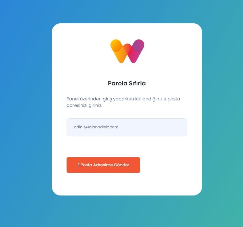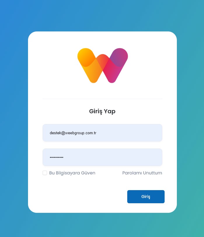 Size verilen kullanıcı bilgileri ile girş yapınız. Weeb Group Destek Ekibinin panel için kullandığı adres destek@weebgorup.com.tr dir.